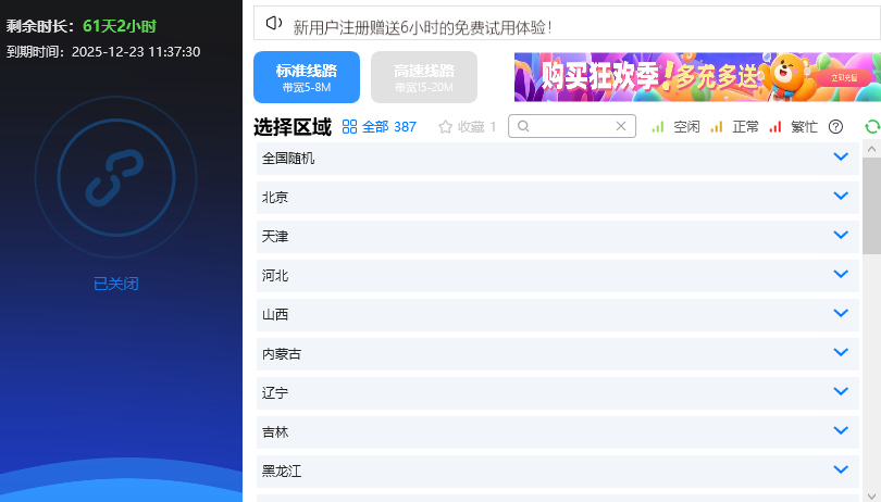 比如我平时在需要多账号管理或者测试地域性服务时会用“酷熊加速器”,它提供了多个国内城市的节点选择,连接速度也比较稳定。使用时只需要选择想要的省市节点,一键连接,IP地址就切换过去了。虽然不是永久免费,但普通用户偶尔用一下基本够用。