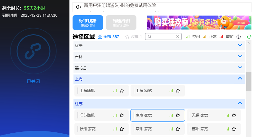 具体操作很简单:先安装软件,注册账号并登录,然后选择你想要的省份或城市节点,点击连接,成功后你的IP属地就会显示为所选地区。不过有一点要注意,不是所有APP都会立即刷新IP信息,有些可能需要重新登录账号或清除缓存才能生效。