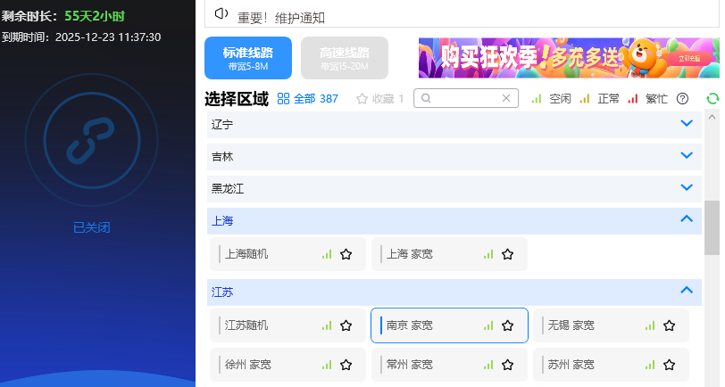 具体操作很简单:下载安装后注册账号,新用户有免费体验时间。登录后在主界面选择“国内游戏”或“网络优化”板块,里面会有多个城市节点可选。比如你原本在上海,可以切换到北京的节点,连接成功后,你的IP地址就显示为北京了。整个过程一键操作,不需要任何技术背景。