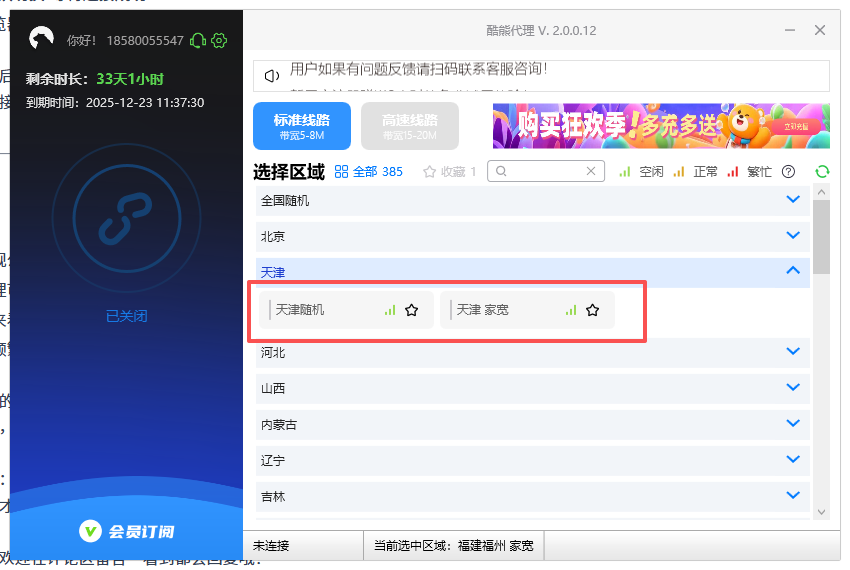 第一次打开酷熊加速,界面真的很简洁,没有花里胡哨的功能。首页直接显示当前IP地址和所属地区,点击“切换IP”按钮,3秒左右就能分配到新的IP地址。