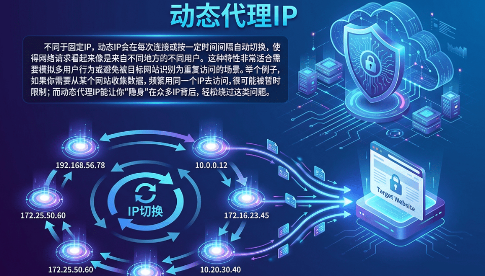 动态IP代理是指通过代理服务器动态分配不同IP地址进行网络访问的技术。与固定IP代理不同,动态IP在每次连接或设定时间间隔内会自动更换,有效提升匿名性与安全性。