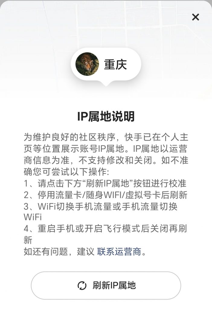 3. 重启快手: 同样,重启快手App,此时你的IP属地会显示为手机卡运营商的基站位置。