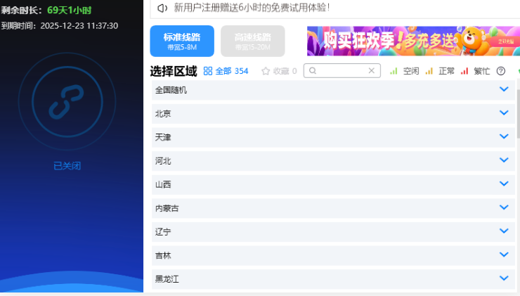 进入酷熊加速app后,先看顶部页面支持的城市节点,同时选择自己想要切换过去的城市,例如你在北京,但是你想要让快手app上显示你在上海,那就选择上海。但是千万不要你在北京,你也选择北京,那这样一来就会出现无用功,完全没必要,同样也要避免随机也是这理儿。