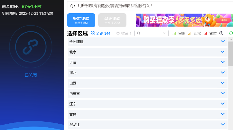 最方便的是它可以自定义省份城市!上次我想测试某个地区的服务,就专门选择了该城市的节点,连接速度很快,玩游戏完全感觉不到延迟。