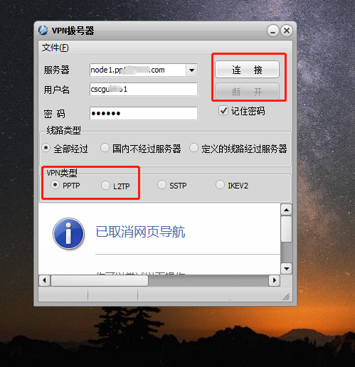 2:填写代理IP地址的 服务器、账号、密码、连接方式